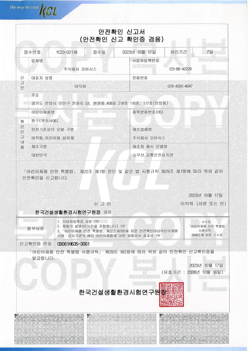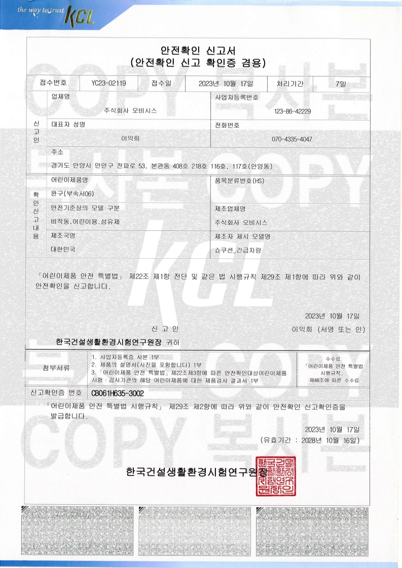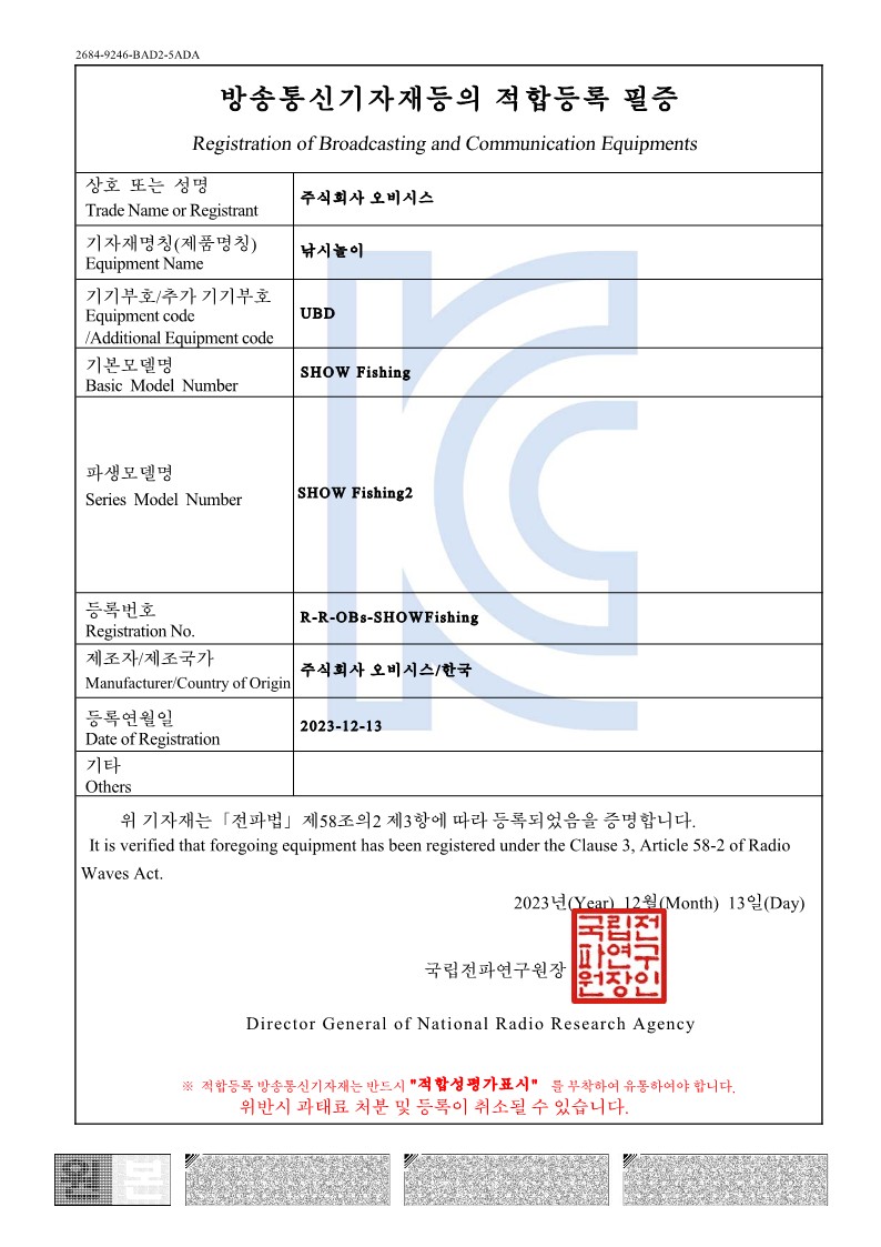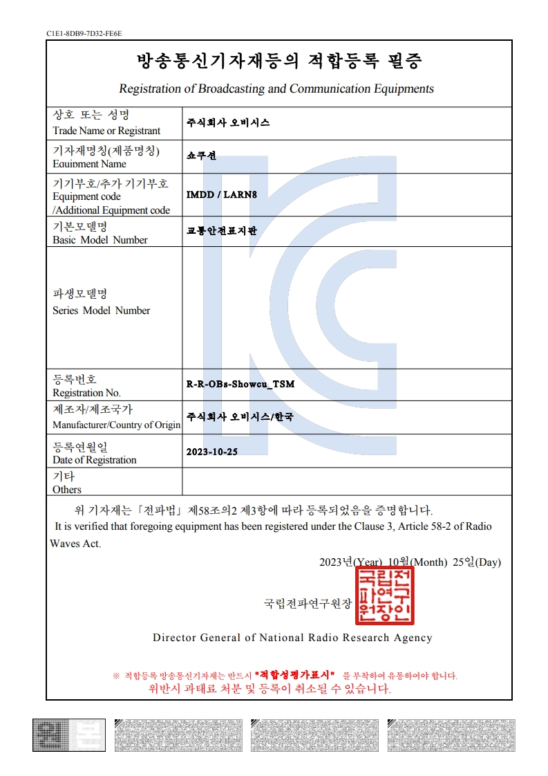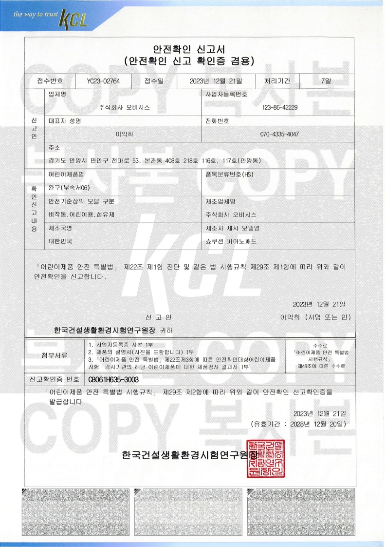 쇼박스월드 (KC 어린이 안전 인증, 전자파적합등록인증)